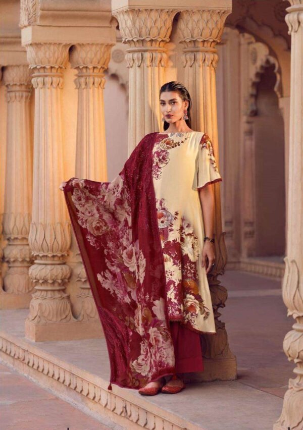 Drape yourself in pure elegance with this viscose muslin unstitched suit, featuring artful digital prints that whisper luxury in every detail. The kurta is adorned with delicate handwork lace, giving it a graceful finish that blends tradition with a modern touch.