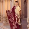 The ensemble is completed with a digitally printed dupatta, beautifully elevated with embroidered patchwork—a standout element that adds texture, charm, and a designer feel. Lightweight yet luxurious, this suit is perfect for festive luncheons, intimate celebrations, or days when you want to look effortlessly refined.